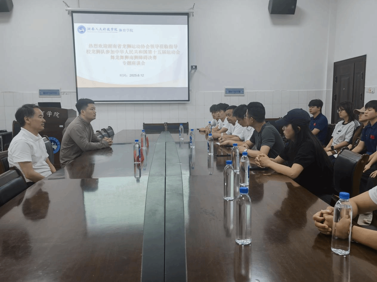6月12日,湖南省龙狮运动协会顾问张继生教授、副秘书长江芳林博士率专家团队莅临体育学院,就龙狮队备战第十五届全国运动会工作展开专项指导。体育学院副院长董植寿主持会议,龙狮团杨志华、梁正军、谢春秋等教师代表参加。