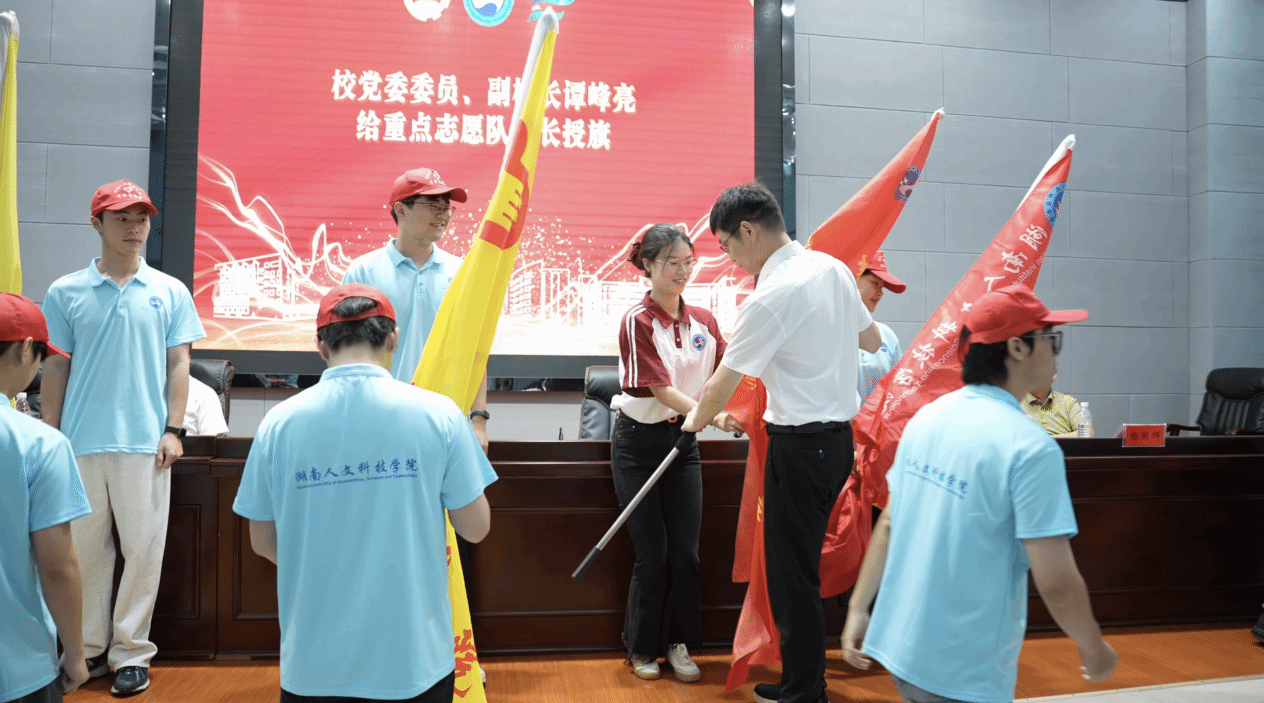 党委委员、副校长谭峰亮为各重点服务队队长授旗