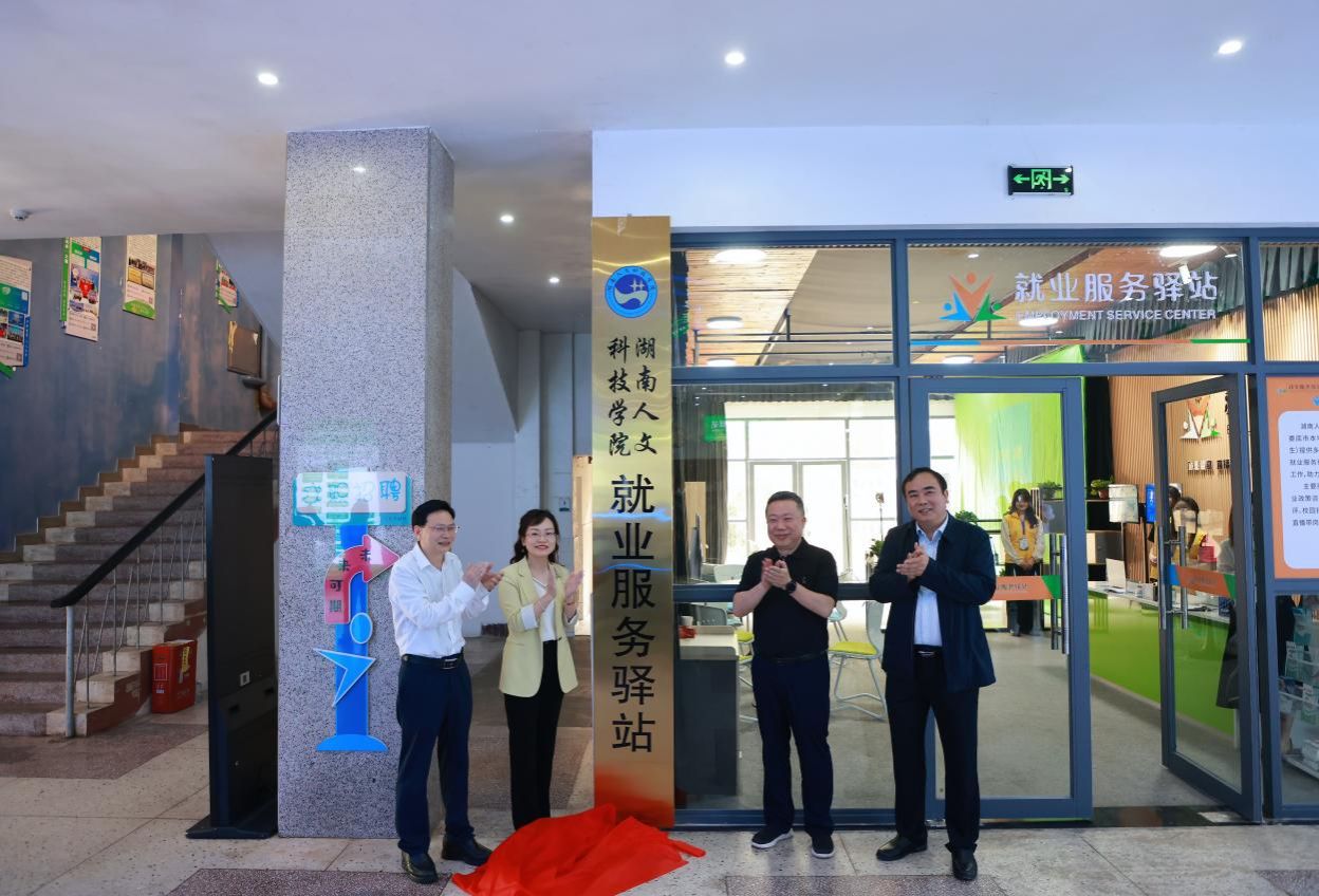 为搭建政校企合作桥梁,促进高校毕业生高质量充分就业,打通就业服务“最后一公里”。4月26日,开云(中国)就业服务驿站在匠成楼正式揭牌。湖南省大中专学校学生信息咨询与就业指导中心四级调研员胡媛,党委委员、副校长陈志国,娄底市人社局党组书记、局长刘文波,娄底市人社局党组成员、副局长曾春谷为就业服务驿站揭牌。