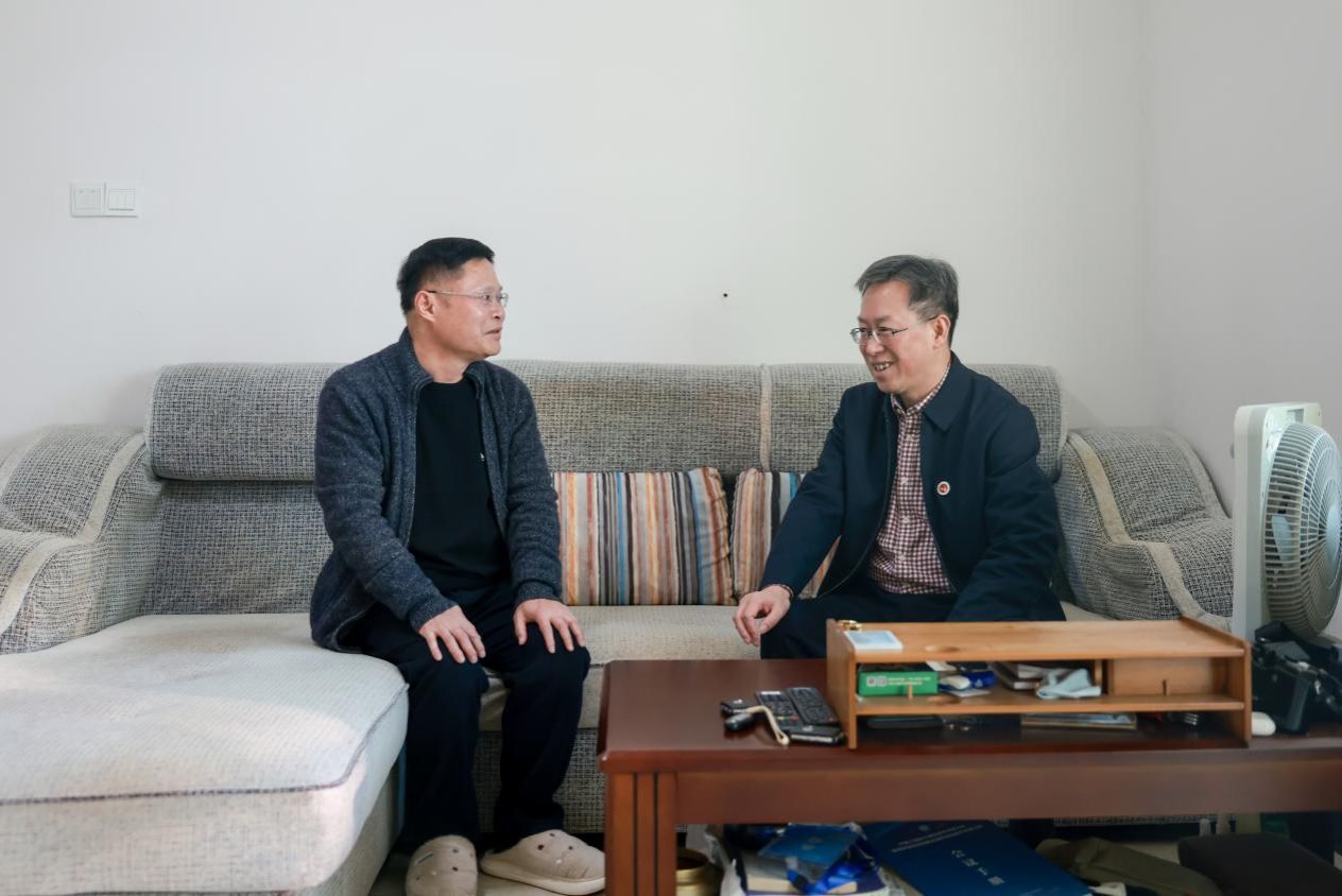 胡凯波一行先后走访慰问了退休老领导郭军、刘和云、刘铁铭以及老教授唐川林、陈征南、李夫泽。每到一处,他都与老同志们促膝交谈,详细询问他们身体状况和生活情况,认真倾听大家对学校建设发展的思考与建议。