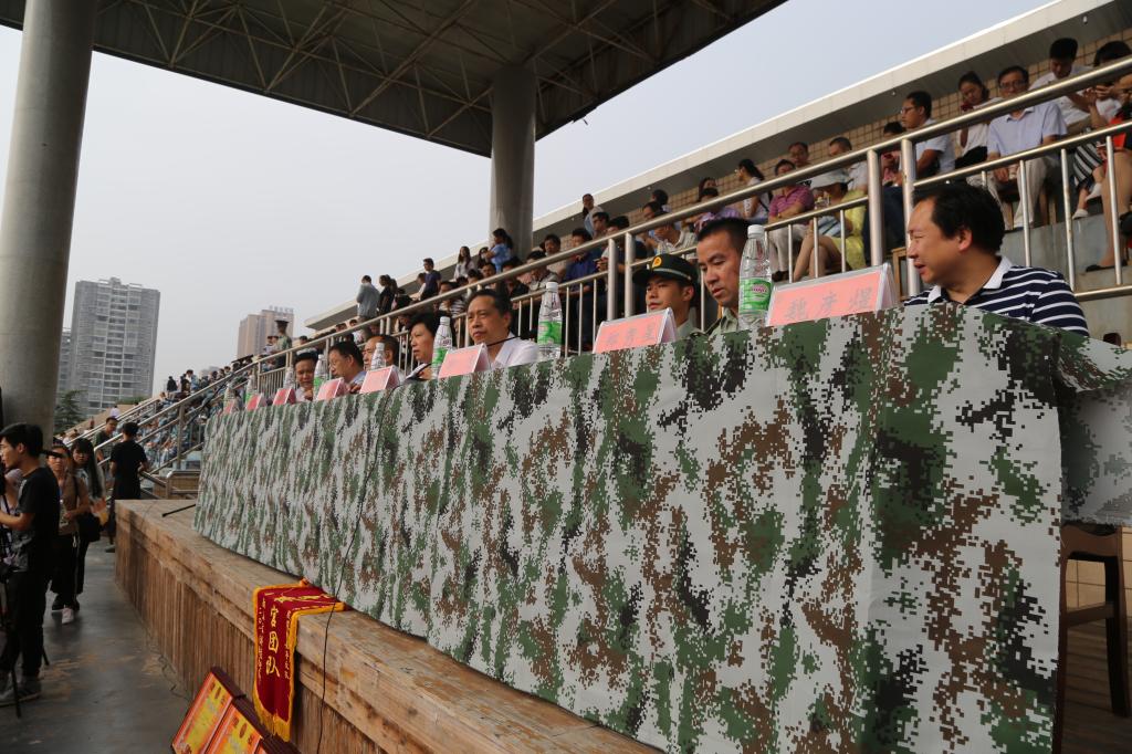 9点30分,在雄伟庄严的国歌声中,大会正式拉开序幕。田径场中迷彩林立、列队整齐,刘和云走到队列中间向同学们致以亲切的问候。随着分列式表演的开始,各二级学院受阅方队依次通过主席台。他们的步伐铿锵有力、动作整齐划一、目光坚毅如铁、口号气势如虹,向与会领导和观众充分展现了军训成果,彰显了人文学子英姿勃发的精神风貌。随后,大家欣赏了由体育学院新生带来的应急棍法表演和信息学院新生带来的军体拳表演,激情豪迈、高潮迭起的表演赢得了全场的阵阵掌声。