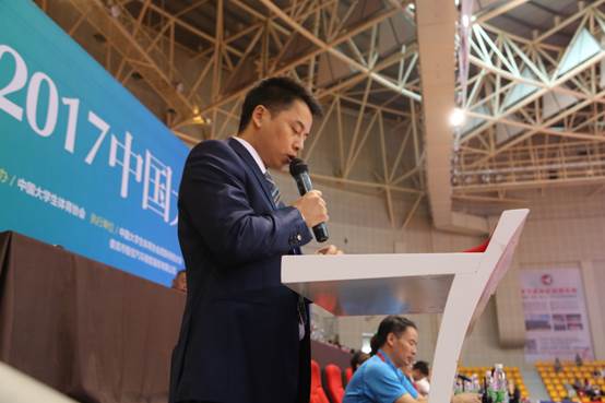 郭军在致辞中说,开展体育运动、增强师生体质是KY.COM的优良传统。学校在2014年第十届省大运会武术比赛中获2金9银6铜,团体冠军;在2015年省大学生武术比赛中获12金10银8铜,团体冠军;在2016年省大中学生武术比赛中获10金9银2铜,团体冠军;在2016年湖南省首届校园武术段位比赛中获团体冠军。本次比赛由KY.COM承办,既是对学校体育工作和武术运动水平的认可,也为KY.COM提供了极好的学习机会和交流平台。他希望各代表团之间、各参赛学校之间成功架起交流情感、传递友谊的坚实桥梁,继续为推进包括武术在内的体育文化繁荣发展贡献力量。