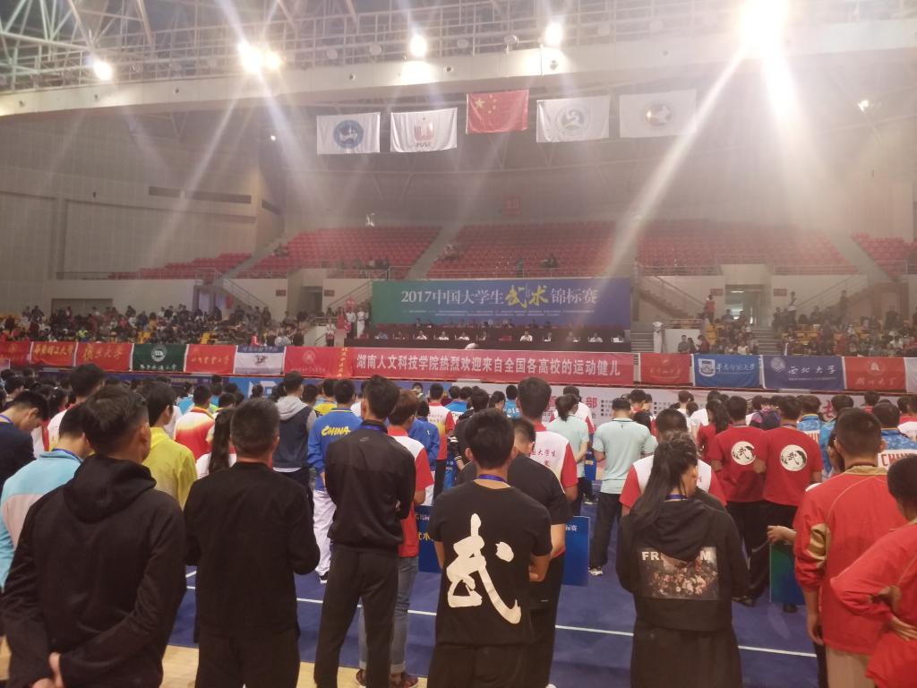 10月4日, 由开云(中国)承办的2017年中国大学生武术锦标赛在娄底市体育馆开赛,来自澳门大学、中国政法大学、中国计量大学、中山大学、厦门大学、暨南大学、浙江大学等全国86所院校的88支武术队参加此次赛事。