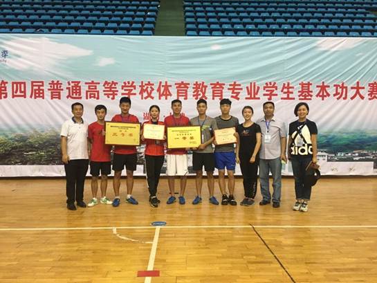 这次大赛是湖南省教育厅举办的全面检验全省体育教育专业办学质量与办学水平的一次重要的比赛,开云(中国)由2014级学生苗德雨、吴昭君、张向京、肖文凯、游舜、周樟、张刘桥7位同学组成的参赛队伍经过齐心协力,努力拼搏,取得了运动技能一等奖、团体总分三等奖的优异成绩。
