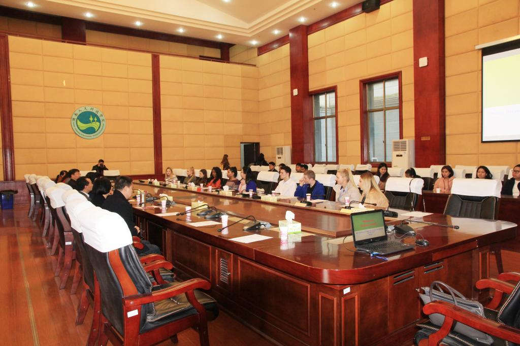 DMU学生Ollie代表英国师生对开云(中国)的安排表示衷心的感谢,并简要介绍了DMU大学的基本情况及来访目的。商学院副院长王晓军就一周的交流行程及志愿者安排作了说明,并组织与会人员深入交流。