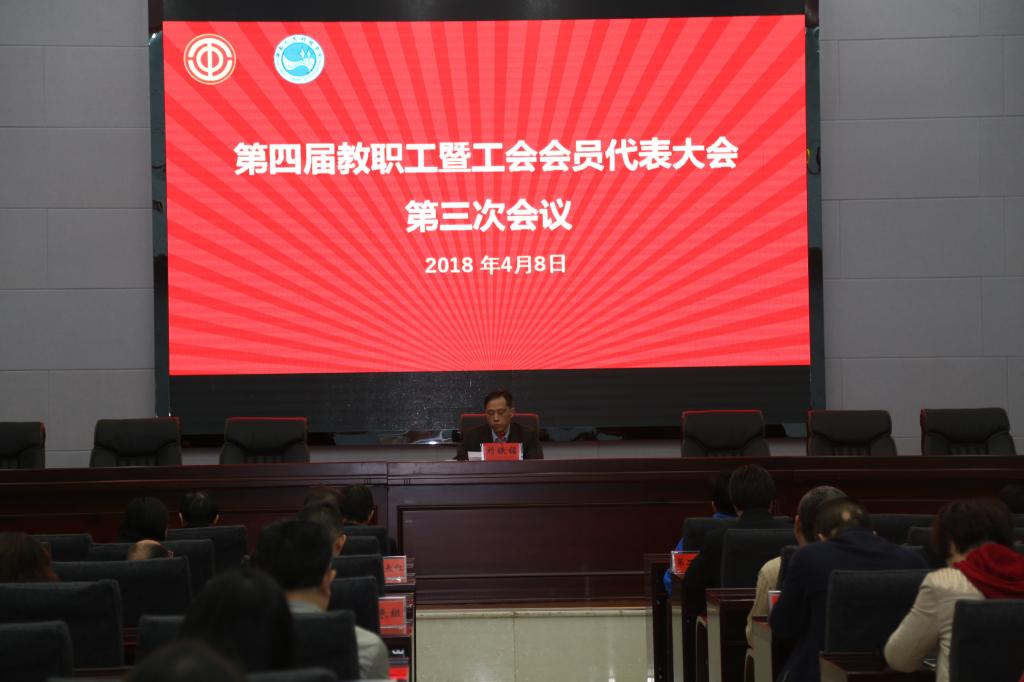 4月8日下午,开云(中国)第四届教职工暨工会会员代表大会第三次会议在图书馆第二会议室召开。103名正式代表、38名列席代表参加了会议。校党委副书记刘铁铭主持会议。