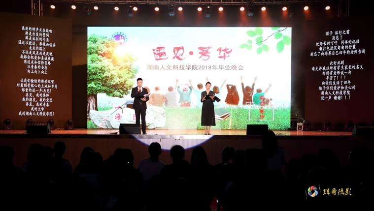 毕业晚会环节,绚丽夺目的街舞《青春,不散场》、灵动婉约的群舞《山灵》、激情四射的拉丁《不仅仅是喜欢》、青春活力的舞蹈《毕业照》、原创歌曲《没有名字的歌》纷呈上演。特别是毕业生李健楠和他母亲宋丹丹带来的朗诵《纸短情长》,触动了每一位在场毕业生的心弦,将晚会推向了高潮。最后,晚会在全场所有同学深情合唱《后来》的歌声中圆满落幕。整台晚会,大部分节目由毕业生创作并参与演出,许多已经参加工作未能回校的毕业生通过校团委微信、学校官方微信和娄底新闻网等平台观看了直播(网络点击量高达10万余次),并纷纷点赞留言,表达了对学校的感激和祝福之情。