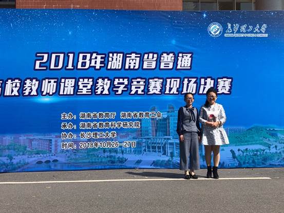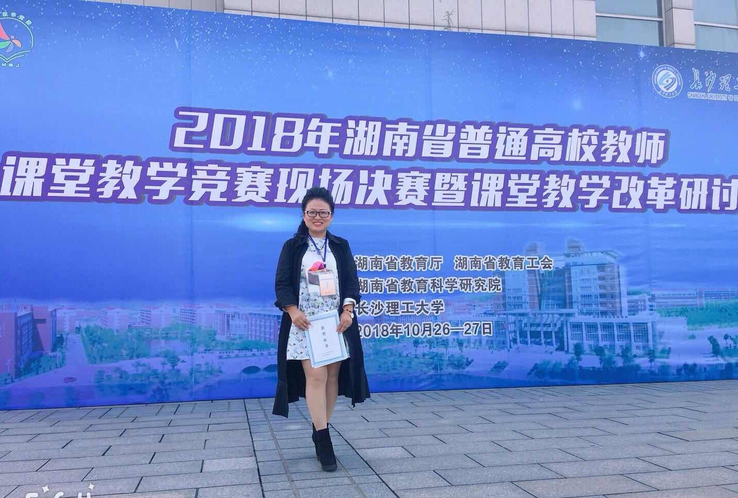 湖南省高校教师课堂教学竞赛由湖南省教育厅和湖南省教育工会联合主办,其旨在推动高校重视课堂教学和教师专业发展,引导高校教师加强课程教学研究,不断深化课程内容和教学方法改革,不断强化教学工作中心地位,全面提高人才培养质量。此次比赛从2018年上半年下发竞赛通知开始,到10月27日现场决赛结束,历时6个月,历经各学院推选、校级比赛、省级网上复赛、省级现场决赛,本次比赛全省共有229人进入复赛,复赛阶段参赛教师提供一门课程的20个教学节段和教学视频,进行网评,全省56所高校共有67名教师通过专家盲审网评进入现场决赛,现场决赛时从复赛的20个教学节段中选取5个,随机抽取其中1个进行现场讲授,最终赛出省级一等奖。