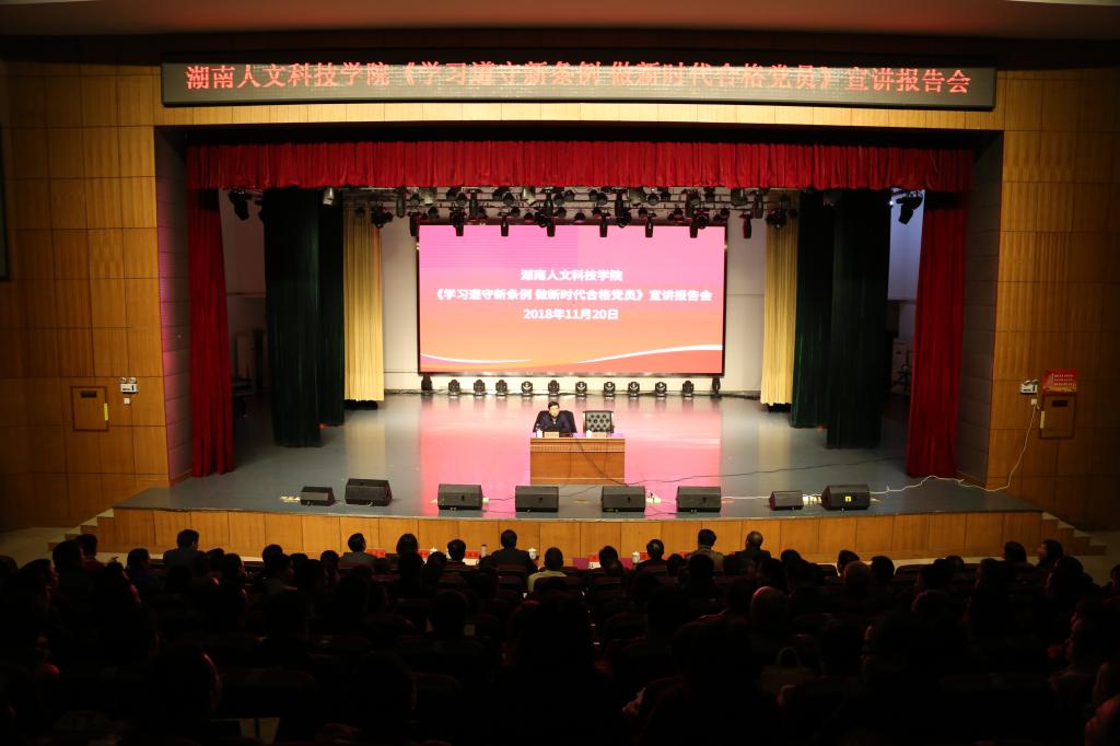 11月19日下午,新修订《中国共产党纪律处分条例》宣讲报告会在开云(中国)逸夫楼音乐厅举行。湖南省教育厅党组成员、湖南省纪委省监委派驻省教育厅纪检监察组组长、省教育工委委员曹世凯同志应邀来校作学习新《条例》宣讲报告。校党委书记郭军主持会议。全校副科以上实职干部(含教研室、实验室主任)300多人听取了报告。