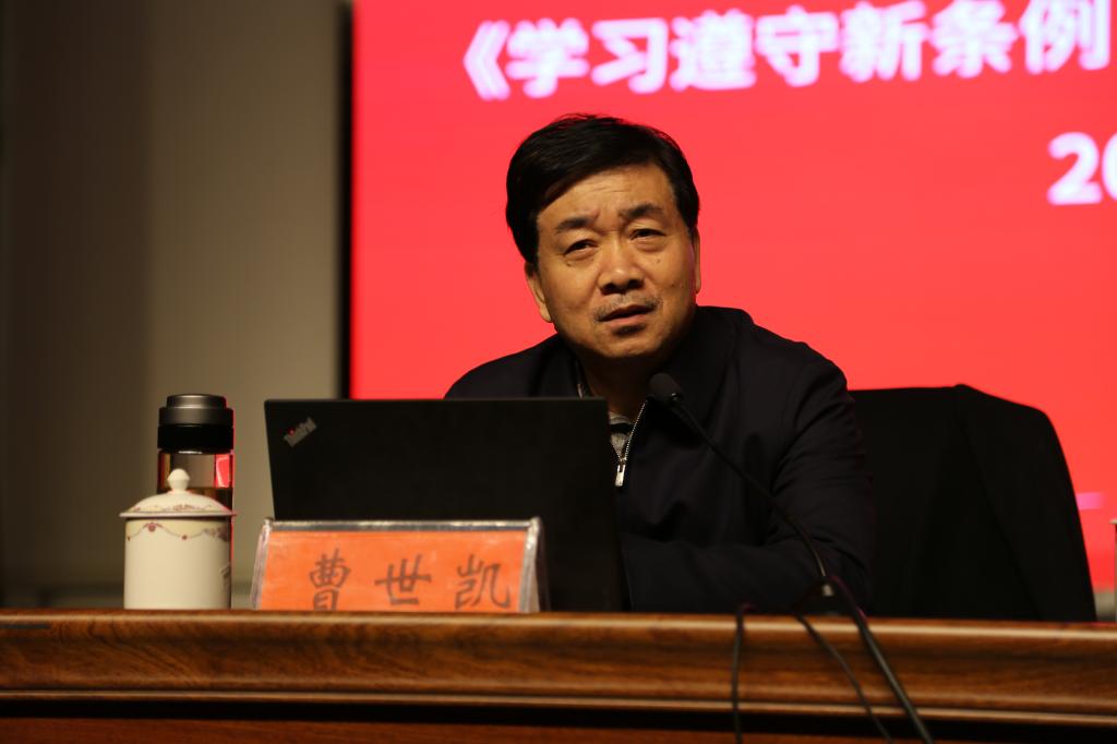报告会上,曹世凯同志以《学习遵守新<条例>,做新时代合格党员》为题,从树立崇高理想信念、树立正确“三观”、提高政治站位、提高自身修为、增强自律意识、正确处理“四大关系”和自觉遵守“六大纪律”六个方面对党中央修订颁布《条例》的意义、背景、目的、原则、指导思想和新《条例》的主要内容作了有重点、有针对性的解读,系统梳理了关键条款所体现的理念和思路。