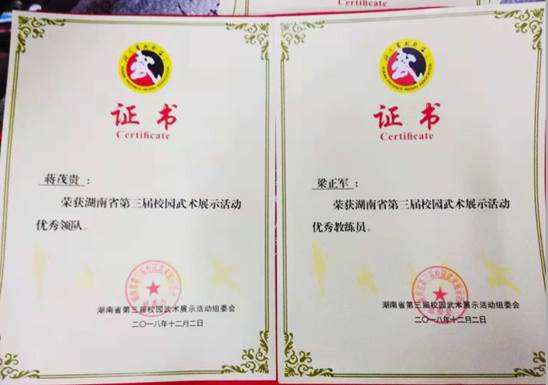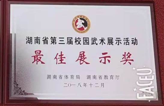 12月2日,由湖南省体育局、省教育厅联合主办的湖南省第三届校园武术展示活动比赛在湖南师大附中高新实验中学体育馆举行,本次比赛选手达1800人,有全省14个市州的近90支代表队参赛。开云(中国)段位武术代表队获得高校组“第一名”,大会“最佳展示奖”,并荣获全省首批“湖南省武术特色学校”荣誉称号。蒋茂贵获“优秀领队”,梁正军获“优秀教练员”。