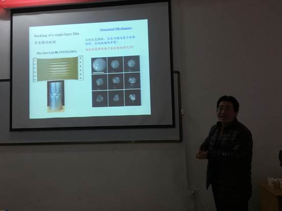 何博士首先介绍了表面科学的现状及发展趋势,然后从皱纹发生的机理,皮肤结构与演化,皱纹的美学与实用价值等几个方面进行了阐述,并从几何与力学因素方面提出了四点抗皱策略。报告把生活中的美容现象和表面科学有机的联系起来,融自然科学人文为一体,深受师生们的欢迎。