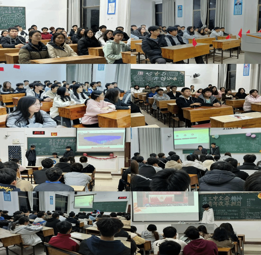为了深入理解和贯彻党的二十届三中全会的精神,引导青年学生深刻领会改革的深远意义,信息学院团总支组织了全院在校学生,以班级为单位,于2024年11月27日晚通过线上和线下的方式,举办了以“学习三中全会精神,促进青年担当改革”为主题的团课活动。