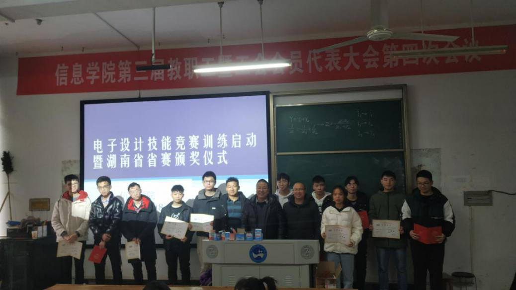 12月18日上午,电子信息工程专业2018级、2019级同学集中在百全楼103教室,参加2020年下期的课程实践教学活动启动仪式暨湖南省电子设计竞赛颁奖活动。信息学院刘浩副院长参加活动,为获奖同学颁奖,并勉励电信专业各位同学,要加强专业实践能力的学习,为走上职场提升自己的专业技能竞争力而努力。
