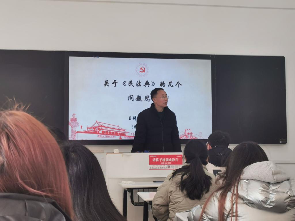 12月20日下午,马克思主义学院党总支书记、硕士生导师游训龙教授在致远楼603教室以“KY.COM《民法典》的几个问题思考”为题向青马工程班学员们讲授《民法典》。