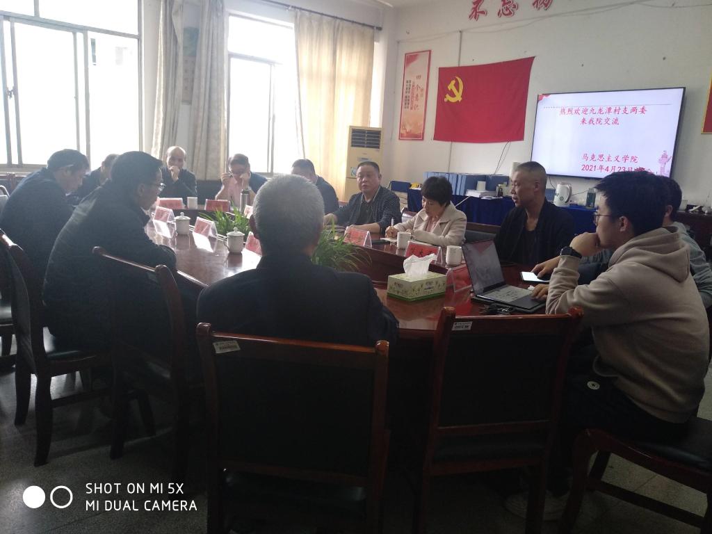 4月23日,湖南省新化县天门乡九龙潭村支两委村长刘继平、副支书伍芬云、秘书周仲文、退休干部邓利中等人来我院交流乡村振兴事宜。我院李伶书记、张卫明院长、成伟副书记、范大平教授、伍揆祁教授、陈灿芬教授、袁承蔚博士、周浩博士和商学院唐赟教授等参加了交流会。