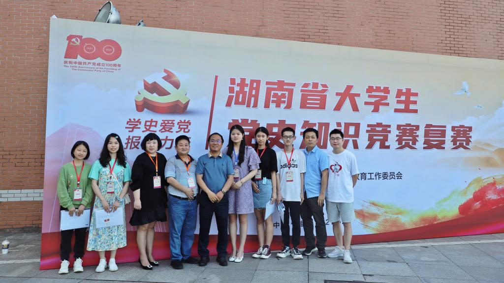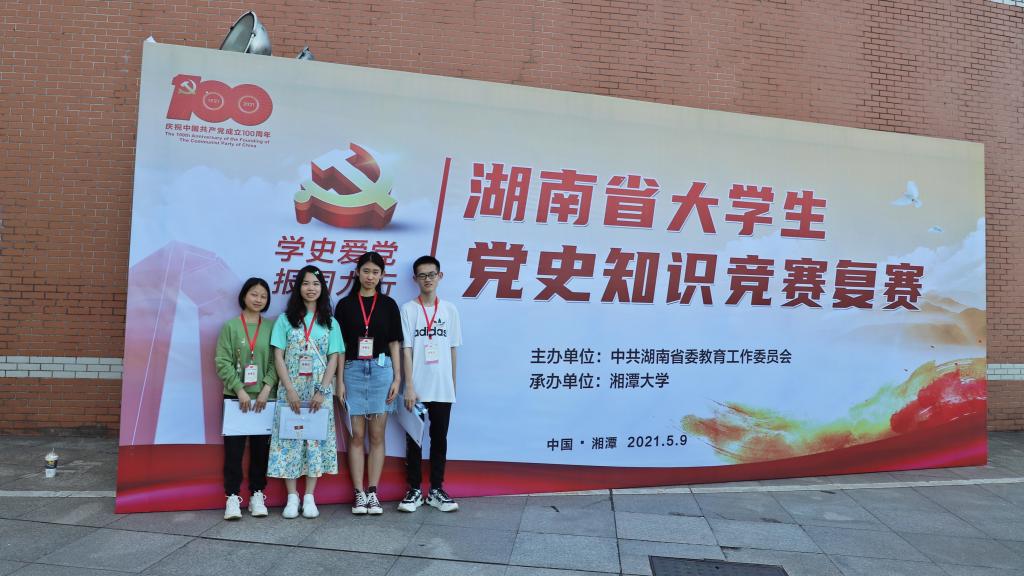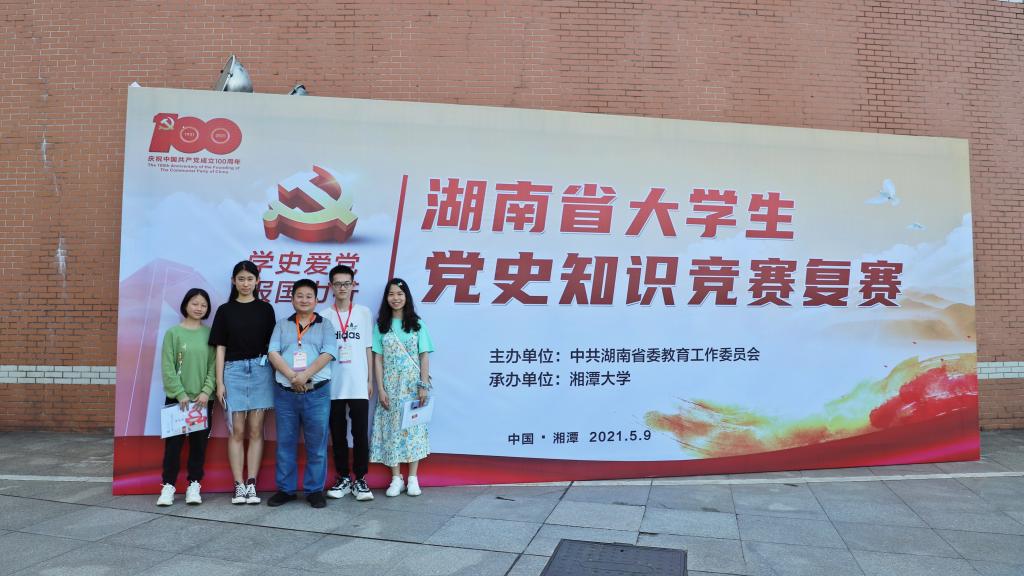 5月9日,由中共湖南省委教育工作委员会主办、湘潭大学承办的湖南省大学生党史知识竞赛复赛在湘潭大学举行。此次比赛由开云(中国)党委宣传统战部尹华老师领队,我院学生周泽、李雪、李晴雯、陈浏平代表开云(中国)参赛,杨国辉副院长和辅导员张得才担任指导老师,校党委宣传统战部曾瑶老师与我院谢科峰博士、李盼强博士一同前往湘潭大学助阵。