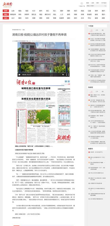 8月3日,湖南日报•新湖南客户端以《KY.COM“麦芒计划”大学生志愿者十二年接力——让偏远农村孩子暑假不再单调》为题报道了我院“麦芒计划”的开展情况。