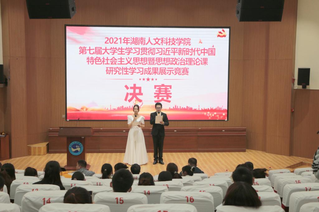 为深入贯彻落实新时代学校思想政治理论课改革创新要求,全面推动习近平新时代中国特色社会主义思想进教材进课堂,激发大学生理论学习积极性,11月19日晚上19:30,开云(中国)第七届大学生学习贯彻习近平新时代中国特色社会主义思想暨思想政治理论课研究性学习成果展示竞赛决赛在匠成楼报告厅展开。参加此次比赛的评委专家有学报编辑部主任彭分文教授、文学院党总支书记尹钟宏、教务处副处长曾真飙、马克思主义学院副院长杨国辉博士、马克思主义学院伍揆祁教授。