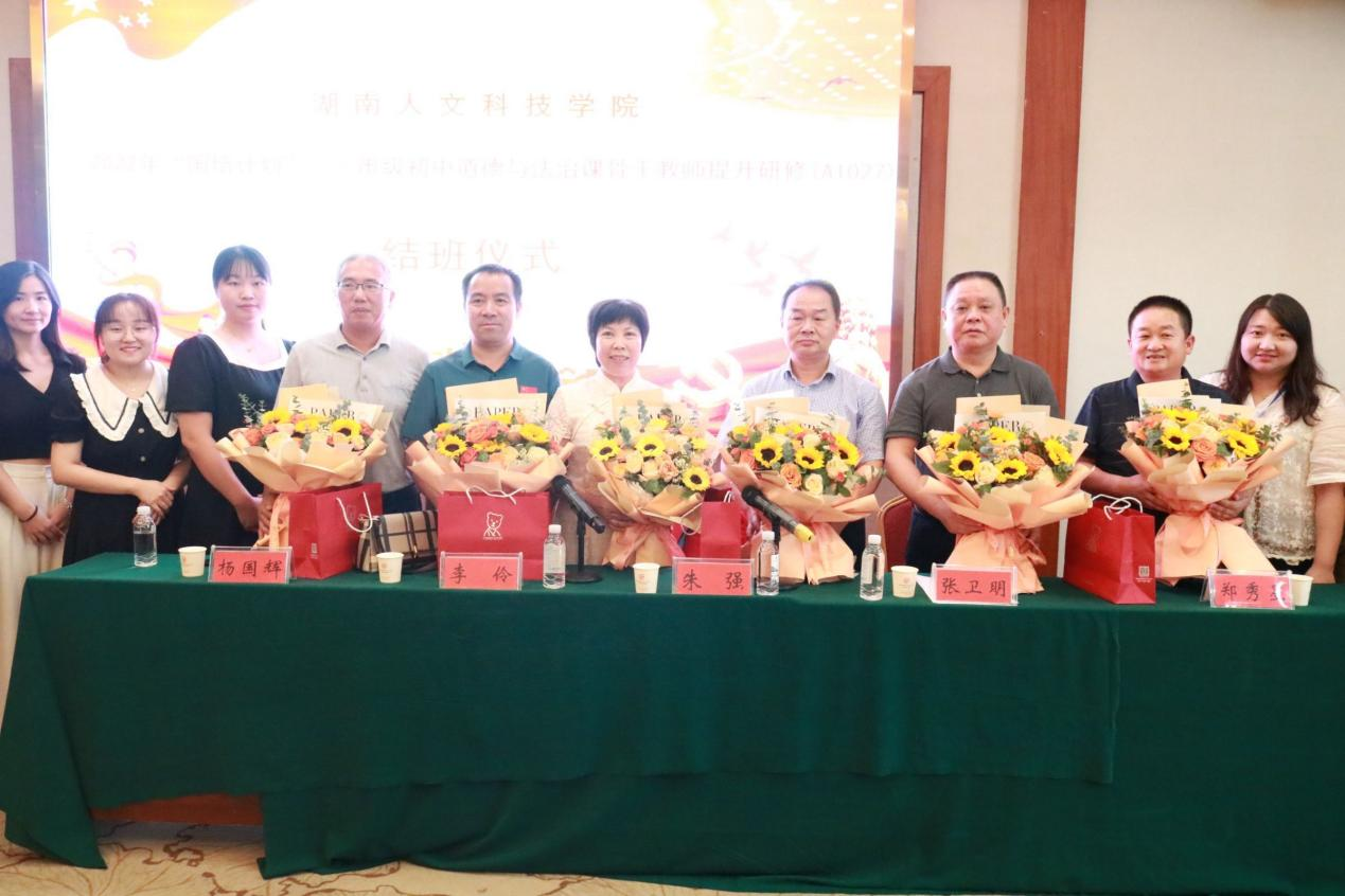 2022年9月28日上午,由我院承办的“国培计划”——市级农村初中道德与法治课骨干教师提升研修班结班仪式在豪莱雅酒店金和厅隆重举行,校党委委员副校长朱强、继续教育学院院长郑秀星、马克思主义学院党总支书记李伶、马克思主义学院院长张卫明、马克思主义学院副院长杨国辉出席结班仪式。仪式由马克思主义学院党总支书记李伶主持,马克思主义学院部分老师以及研修班全体学员参加。
