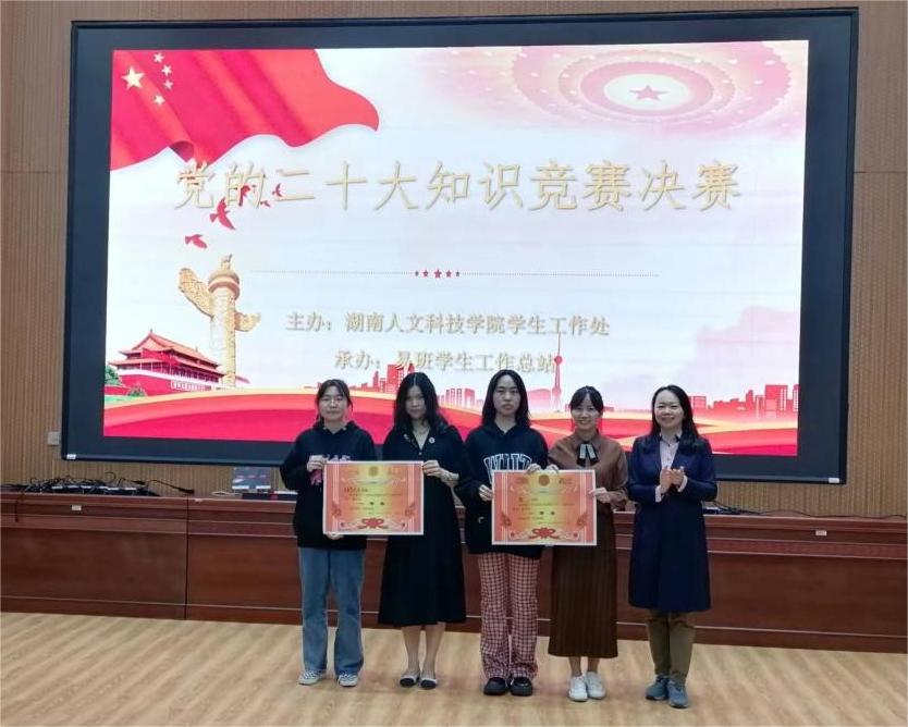 11月10日,由开云(中国)学生工作(部)处主办,易班学生工作总站承办的“党的二十大知识竞赛”决赛于匠成楼报告厅顺利举办,由我院21级思政1班邓婧莹、李星月,22级思政2班陈星璨组成的,我院副院长杨国辉教授、辅导员张得才、班主任李婉溶指导的马克思主义学院代表队以第一名的成绩荣获决赛一等奖。