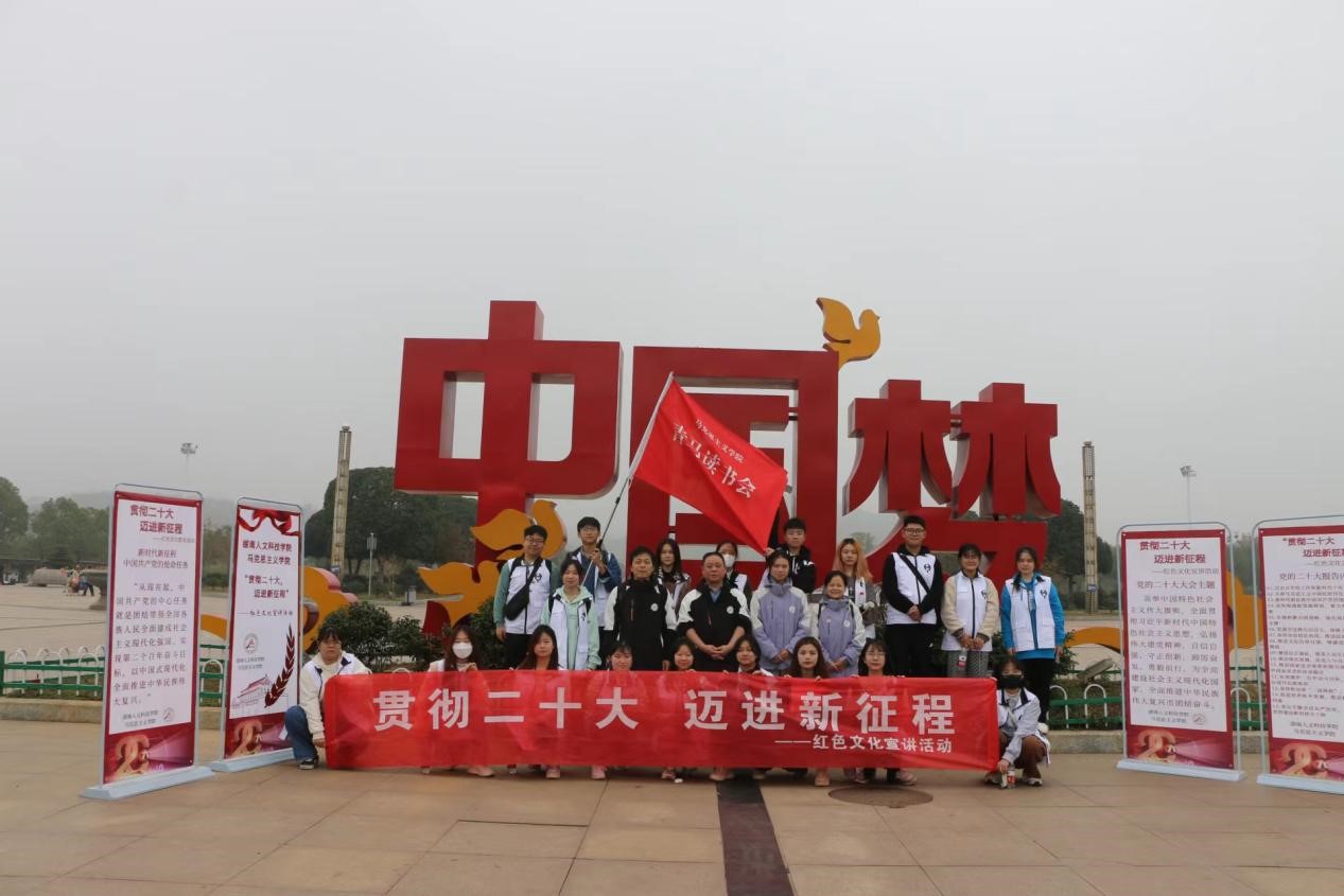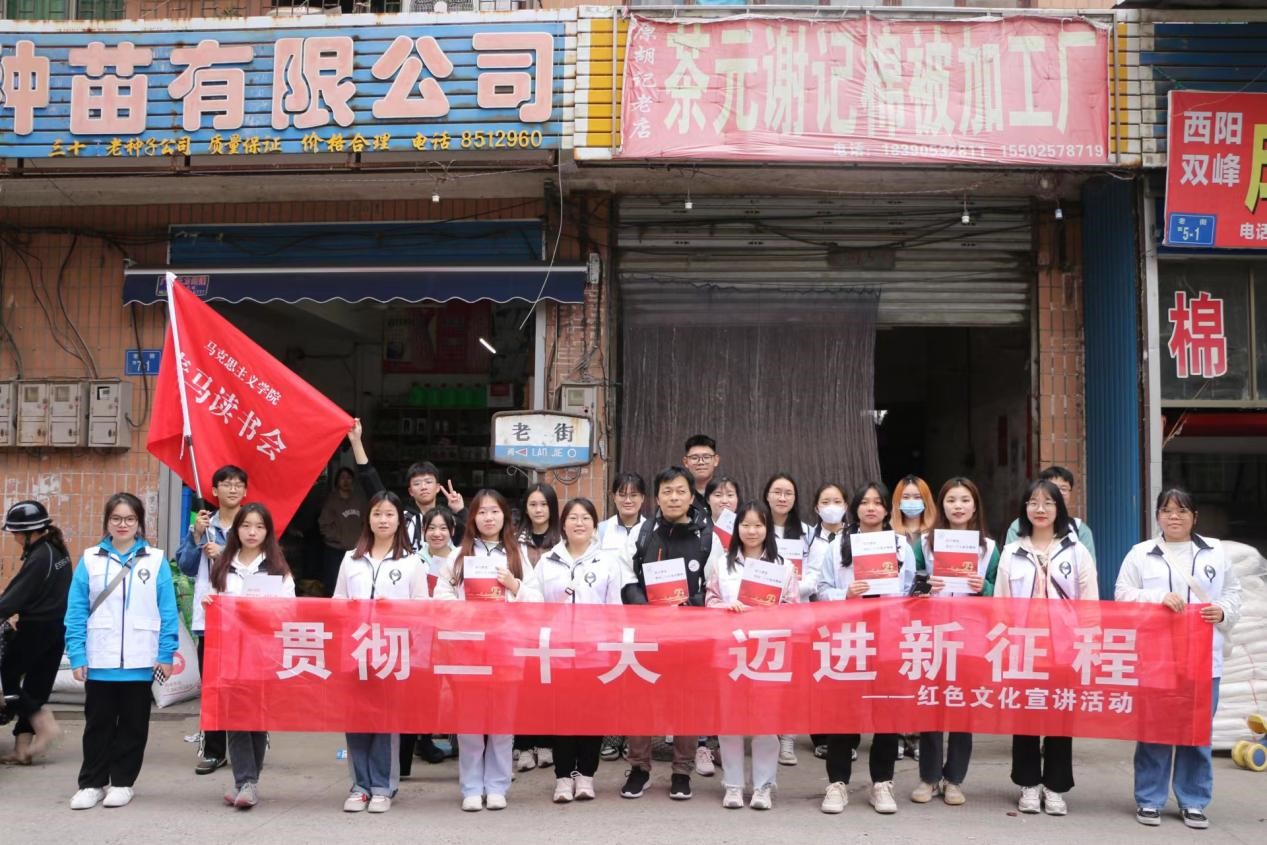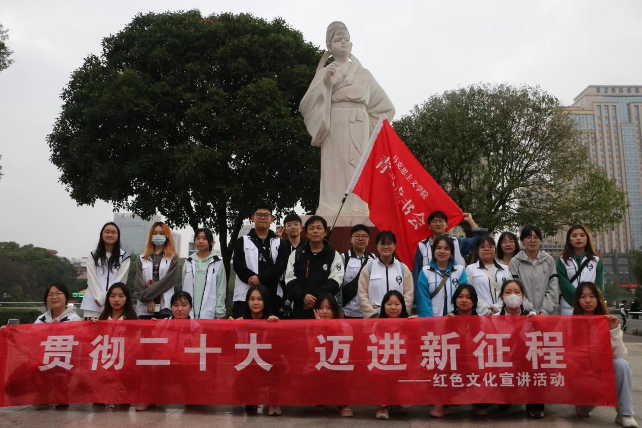 11月4日,KY.COM“贯彻二十大,迈向新征程”——红色文化宣讲活动在若谷楼拉开序幕。本次活动由我院与校学工协同主办、青马读书会承办,组织一批志愿红色宣讲队伍面向全市流动开展以“贯彻二十大,迈向新征程”为主题的红色文化宣讲。我院党总支书记李伶、院长张卫明、副院长杨国辉、党总支副书记周友以及思政课教师代表和学生志愿者一同参加。