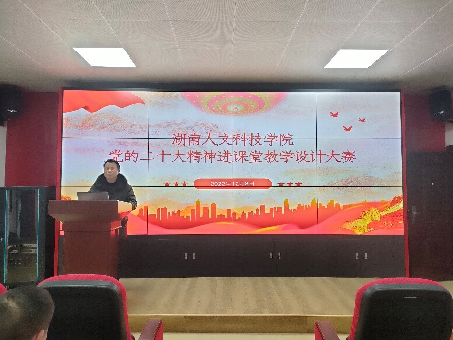本次比赛共分为两个阶段,第一阶段由各教研室自行组织推荐1名以上教师参与决赛;第二阶段由组织机构组织专家陪审团进行教师教学展示评选。本次教学设计活动共分五组进行,分别是:《思想道德与法治》《毛泽东思想和中国特色社会主义理论体系》《习近平新时代中国特色社会主义思想概论》《中国近现代史纲要》和《马克思主义基本原理》。在比赛过程中,各参赛教师严格按照赛制规则围绕党的二十大精神展开教学设计,在前期充分准备了完整的教学设计,巧妙地将党的二十大报告精神融入自己的参赛专题,在参赛现场各进行了为时十分钟的说课。随后,各教研室主任分别对每一门课程的参赛作品进行了点评,并给出修改意见。