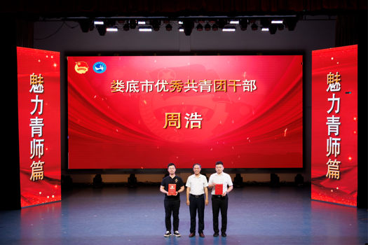 表彰会上,马克思主义学院童明玉同学参加了隆重的入团仪式,老师为其颁发团员证并佩戴团徽。颁奖环节,马克思主义学院在2022年度致力于创新团学工作模式、打造系列精品活动,取得了可喜的成绩,斩获多项集体荣誉及个人荣誉。其中,我院周浩和黄海多次上台领奖。在集体荣誉中,学院团总支荣获学校优秀团总支称号,团总支书记周浩上台领奖,2022级思政2班荣获学校优秀团支部称号,“麦芒计划”志愿服务团获评省级暑假社会实践先进团队称号。在个人荣誉中,团总支书记周浩获评学校优秀团工作先进个人、娄底市优秀共青团干部称号,黄海获评中国自强之星大学生称号,刘美其荣获公益行动奖,申佳梨、黄海荣获社会实践奖,马伍程等同学获评学校优秀团干部称号,刘捷等同学获评学校优秀团员称号,周欣仪等同学获评学校优秀志愿者称号,曹睿钊捐献熊猫血救助白血病患者,获评娄底市无偿献血先进个人称号,他在现场采访中说道:“作为新时代青年大学生,应该力所能及地帮助他人、服务社会,希望未来会有更多的青年大学生加入到无偿献血这项公益活动中。”