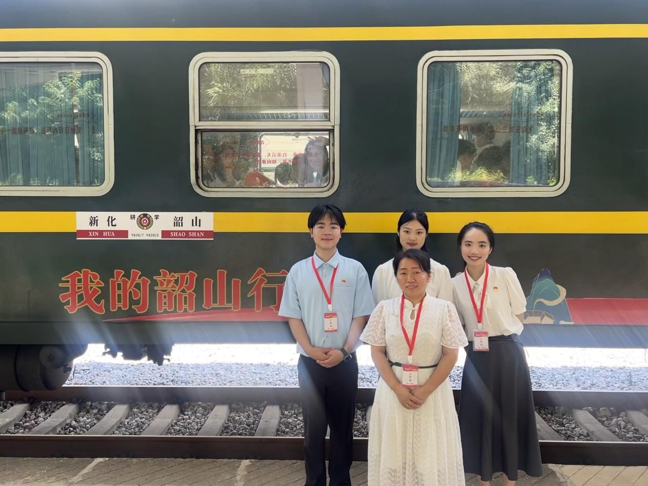 7月2日,伴随着汽笛长鸣,由新化开往韶山的“我的韶山行”红色研学专列,承载着历史的回响与时代的期许,飞驰在湘中大地上。来自KY.COM马克思主义学院的学生黄如、李佩芬、谭思雨,在钟燕老师的带领下,以一堂题为《出发》的沉浸式思政课,在列车上将青年毛泽东徒步游学娄底的故事娓娓道来,让车厢化为连接历史与现实的时空走廊。