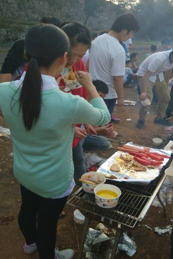 先是在教室里举行新老干交流会,新干们谈自己的大学规划,大家踊跃发言,每一张略显稚嫩的脸上都充满了对未来的勇气。主持人的幽默风趣,现场的气氛甚是活跃。由前任部长爆料现任部长,各种笑料连连,大家也就彼此熟悉起来。部长也和我们分享自己大学的工作,生活,情感的经验,让我们台下的人都受益匪浅。最后由团副进行总结,她对我们提出期待,希望我们扎实工作,努力学习。最令人激动的是烧烤活动了,大家在老田径场进行分组烧烤,这次烧烤,不仅增进了部门友谊,各位小伙伴也在美食的诱惑下打成一片。到六点左右我们收拾剩下的食材和垃圾,拍下了快乐的见证。
