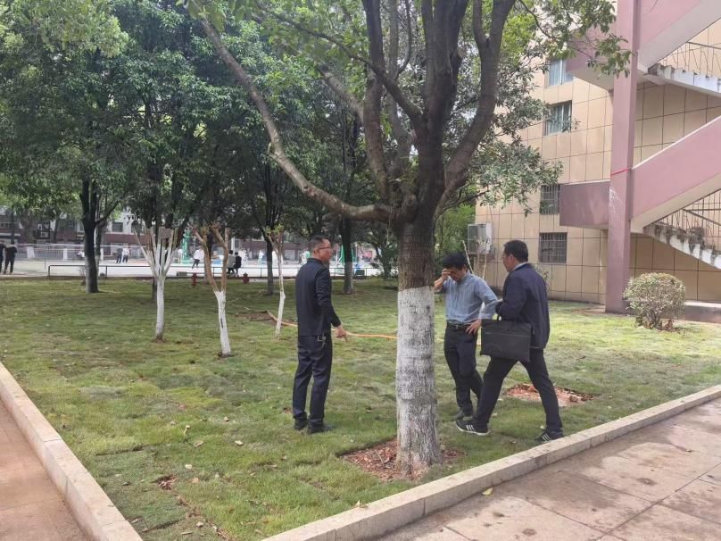 向国红一行实地查看理工实训大楼、学生宿舍区、养根楼、匠成楼等区域的草皮铺植、树木移栽情况,现场提出整改要求。他强调,校园绿化是优化育人环境的重要抓手,必须坚持“育人为魂,质量为本”,园艺、农学等植物生产类本科学生要参加校园绿化的所有环节,主要学习植物生长与植物配置要点,识别园林杂草并掌握防除方法;同时,要严把项目标准,确保草皮铺设质量和景观改造美观。他指出,校园绿化是“隐性实践课程”,需将劳动教育融入养护实践,组织学生参与草坪养护活动。
