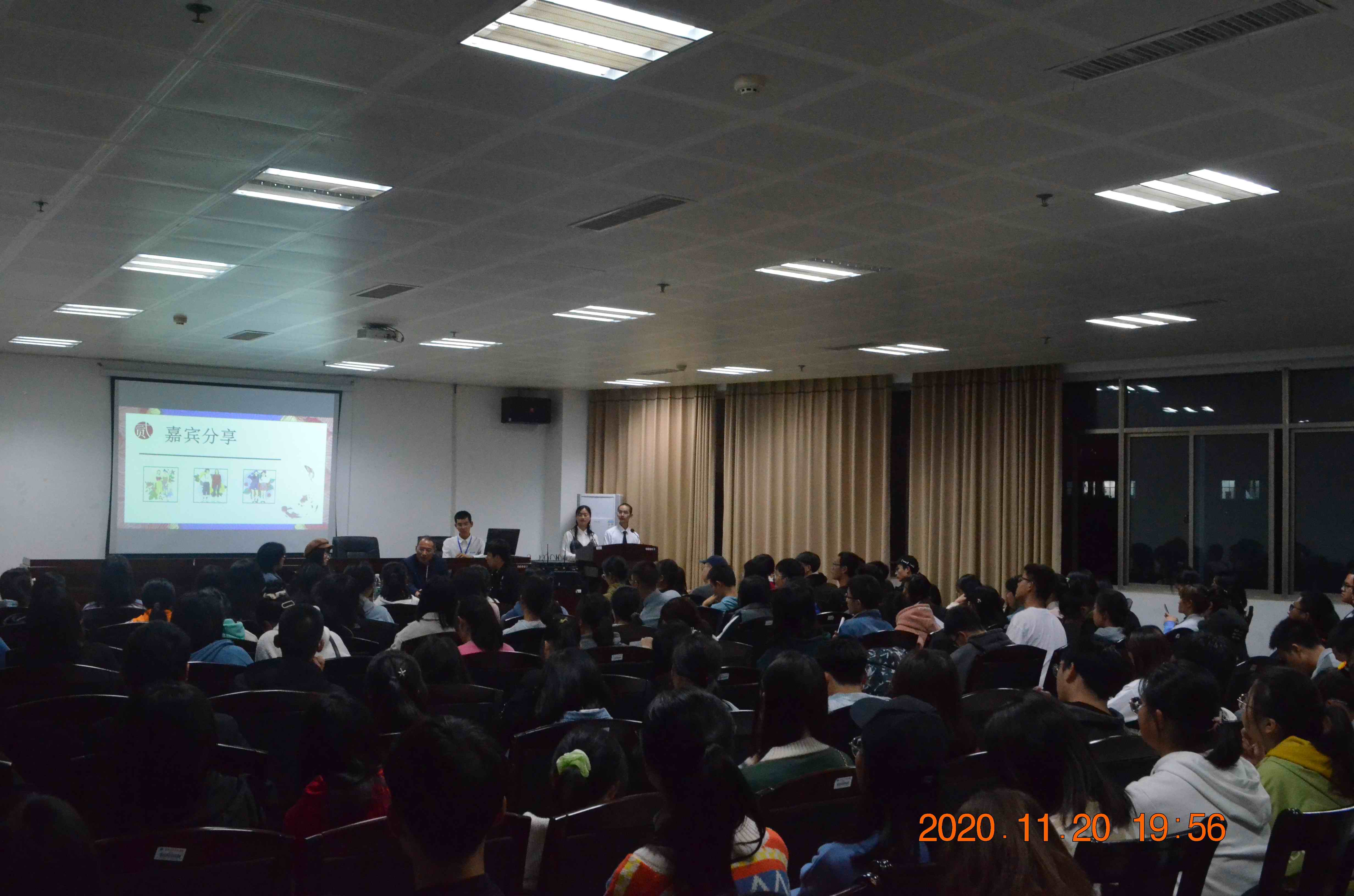 2020年11月20日晚上7点半,由KY.COM主办的第30期真人图书馆活动在图书馆学术交流中心415室隆重举行。文学院副院长倪正芳教授、2020年“一校一书”读书征文一等奖获得者虞浩楠、尹全、李泉林作为本期活动的真人图书,与来自全校的150余名阅读写作爱好者一起,分享了他们品读经典名著《霍乱时期的爱情》之收益与感受。
